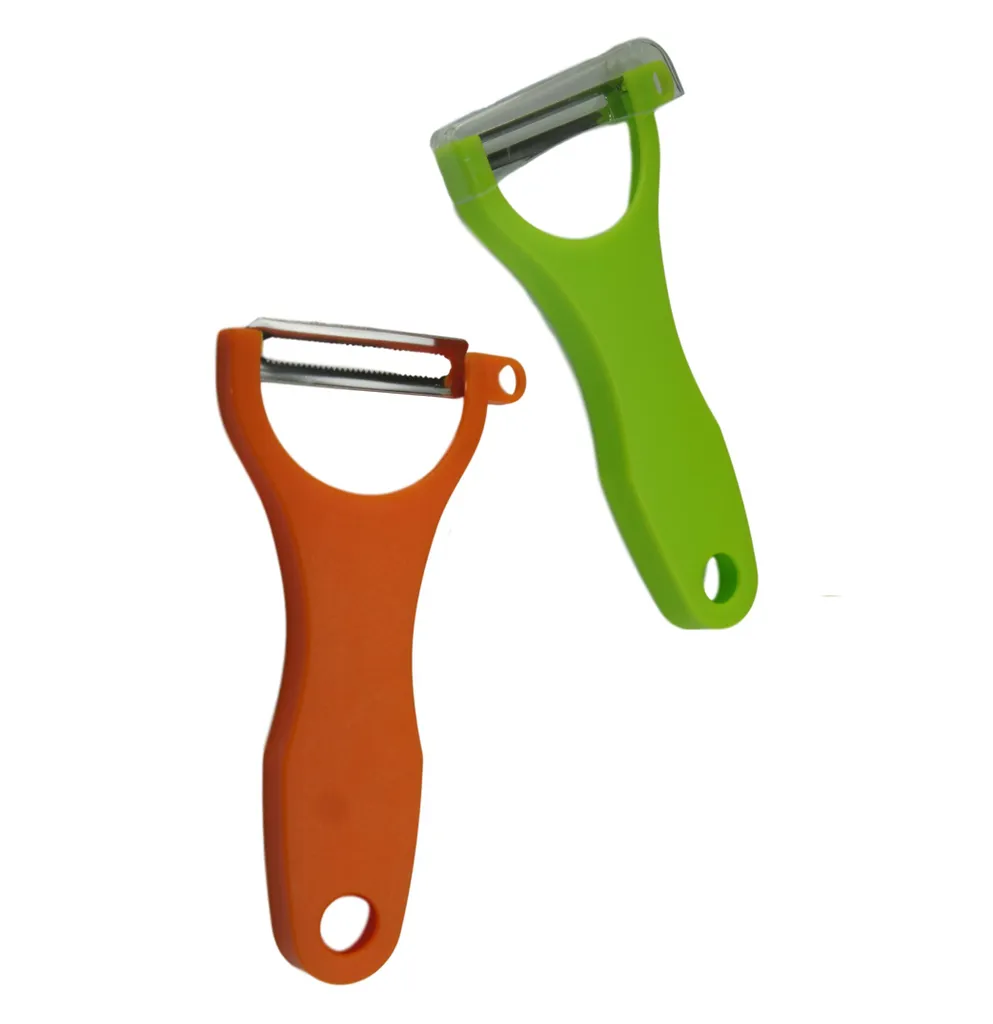 2er Set – Sparschäler Für Obst Und Gemüse – 2er Pack Gemüseschäler Farbe – 1 X Grün Und 1 X Orange | Obstschäler Mit Edelstahl Klinge | Universalschäler – Kartoffelschäler 13,4cm X 6,8cm