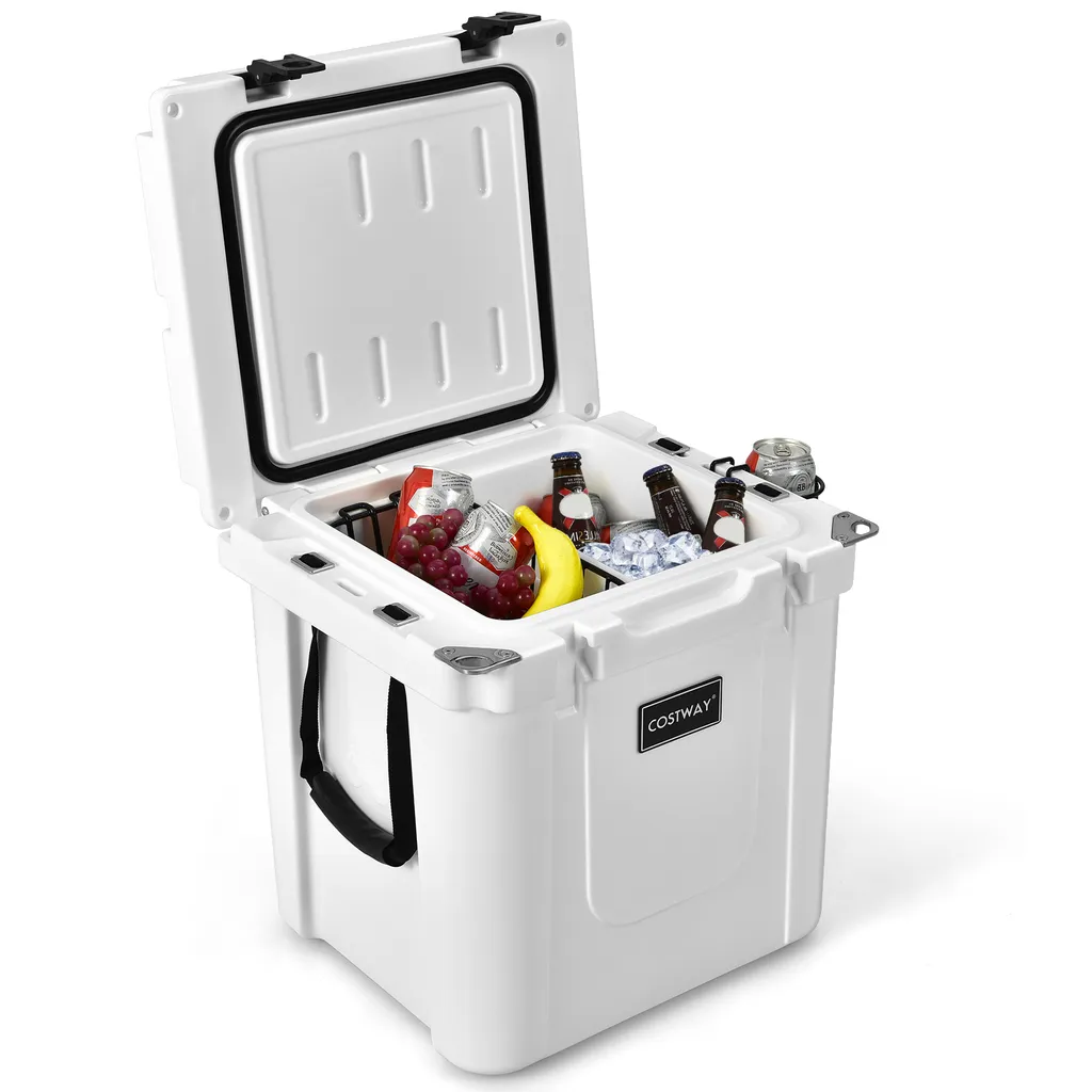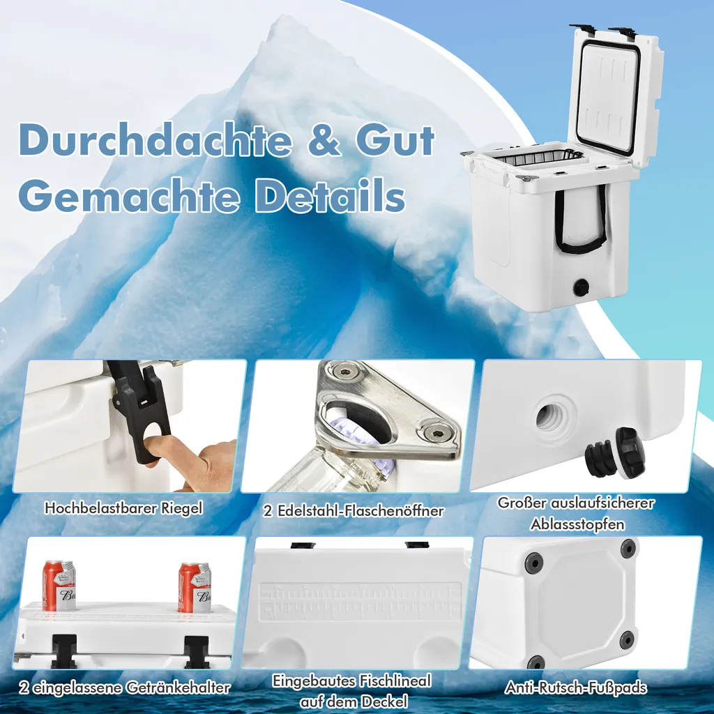 COSTWAY 31L Kühlbox Strapazierfähig Kühler Mit Korb & Getränkehalter Griffen & Fischlineal Eiskühler Tragbar Kälte Bis 9 Tage Weiß