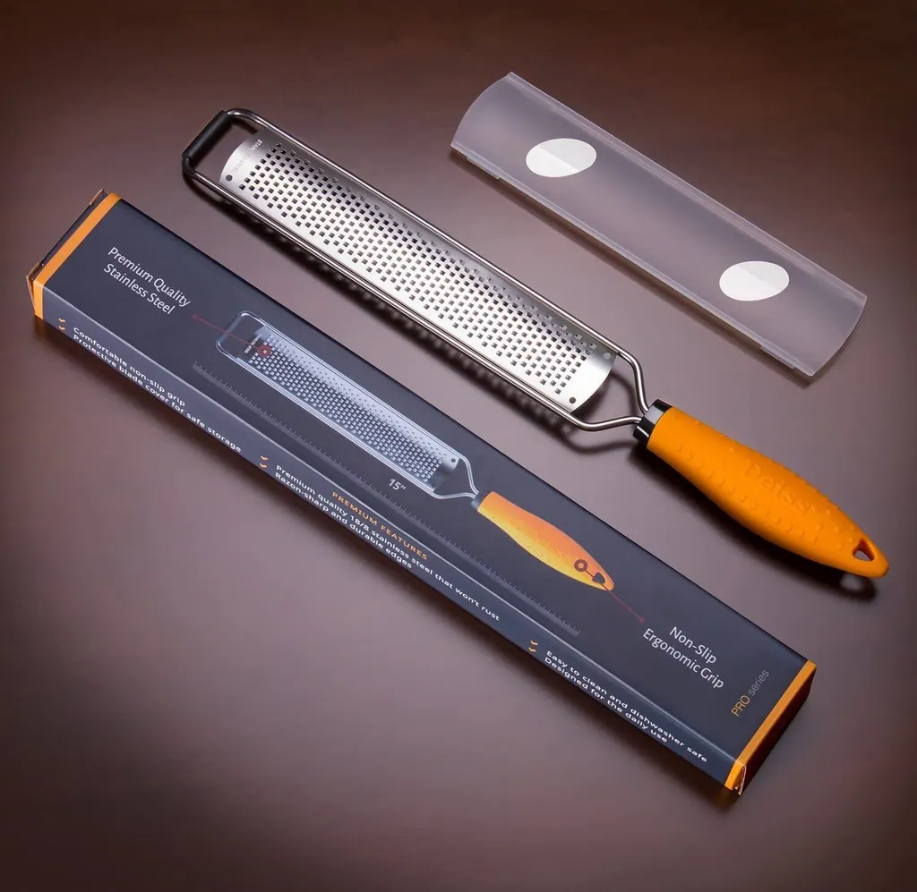 DEISS PRO Käsereibe – Parmesankäse, Zitrone, Ingwer, Knoblauch, Muskatnuss, Schokolade, Gemüse, Früchte – Rasiermesserscharfe Edelstahlklinge, Breit, Spülmaschinenfest