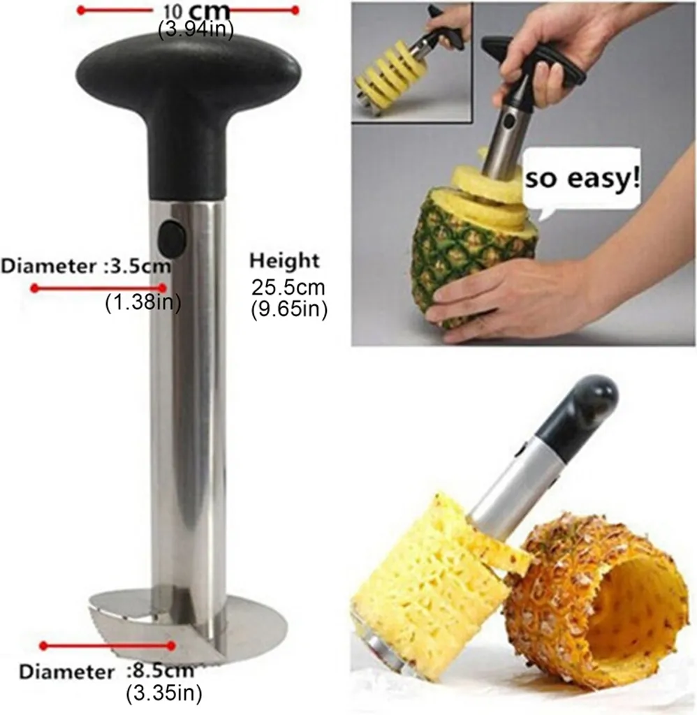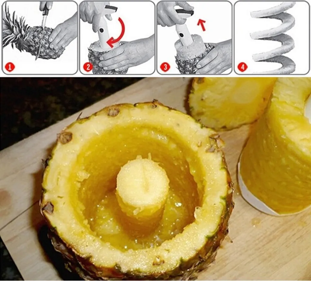 Edelstahl Ananasschneider Ananasschäler Spiralschneider Ananasteiler Zerkleinerer Spiralschäler Entkerner Ananas Obstteiler