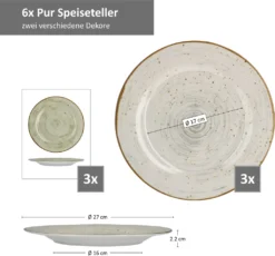 24tlg. Kombiservice Pur 6Pers Kaffeebecher Müslischale Kuchenteller + Speiseteller Flach Porzellan