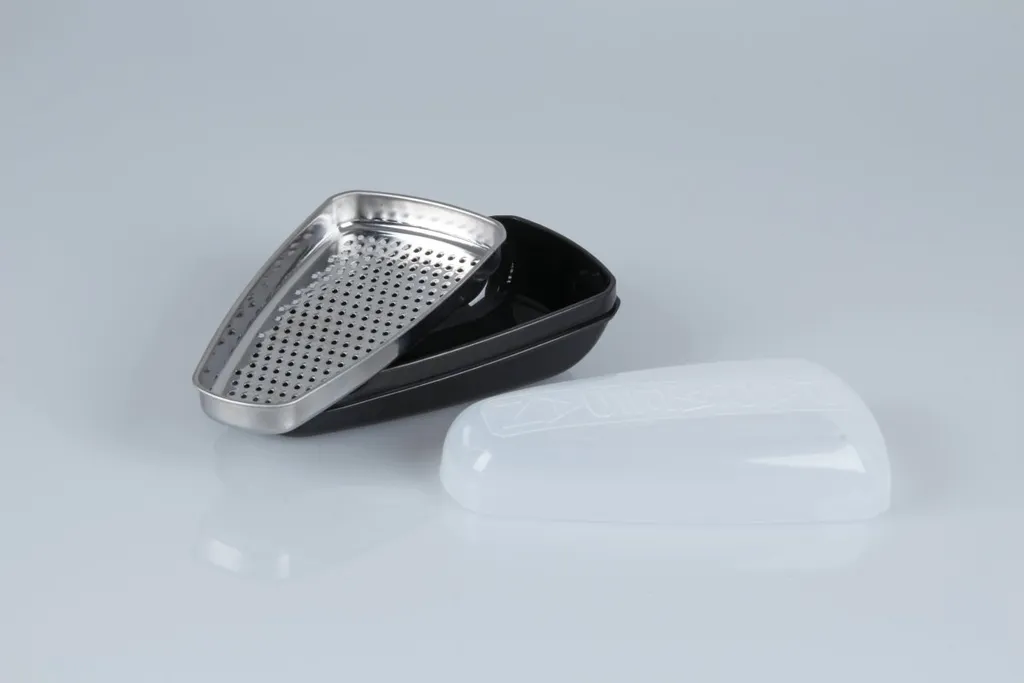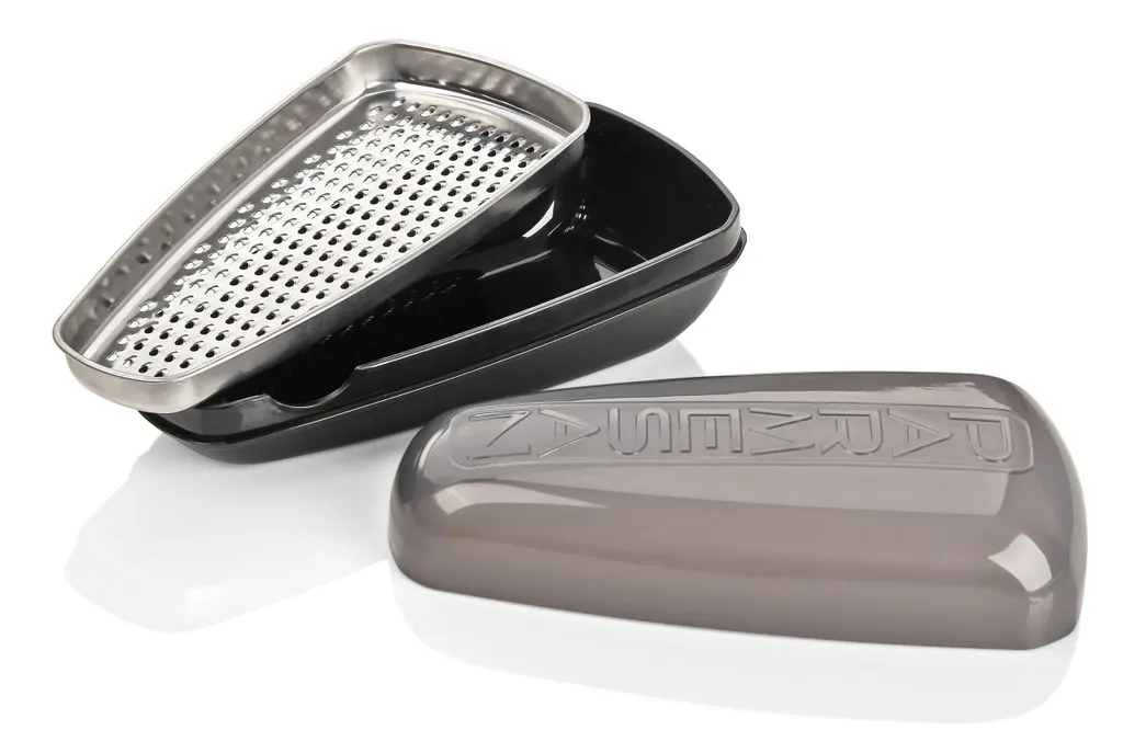 Fackelmann Parmesanreibe- Und Frischebox, Parmesanhobel, Käsereibe Mit Servier-Behälter (Farbe: Transparent/Grau), Menge: 1 Stück