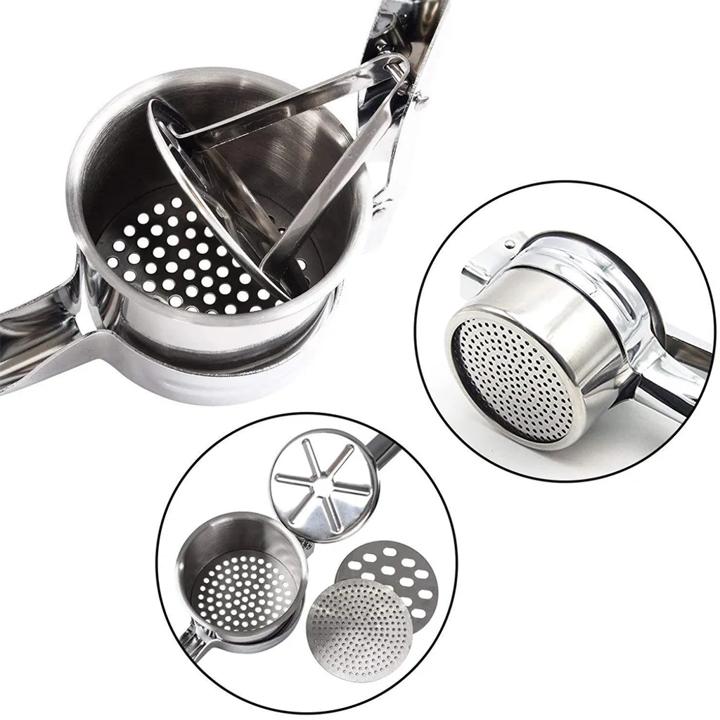 Kartoffelpresse Spätzlepresse Eispresse Aus Edelstahl – Presse Für Spätzle-Kartoffel-Eis Obst Und Gemüse – Inkl. Wechselscheiben