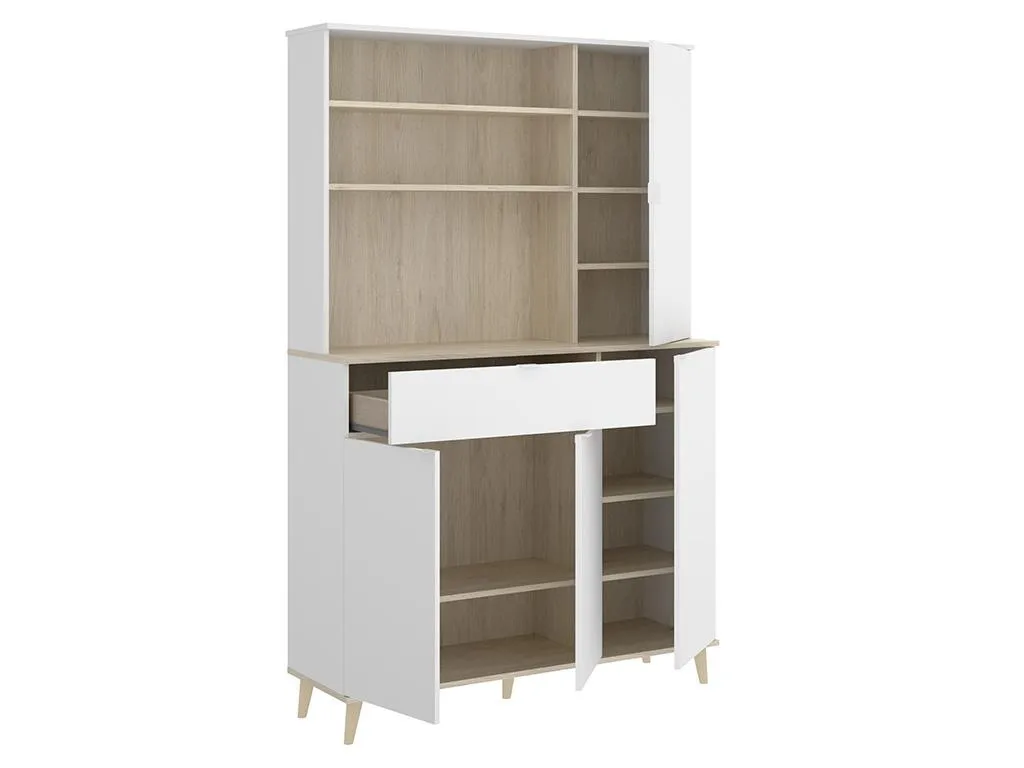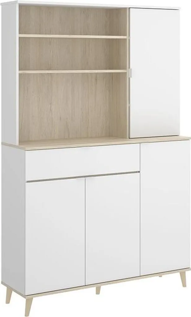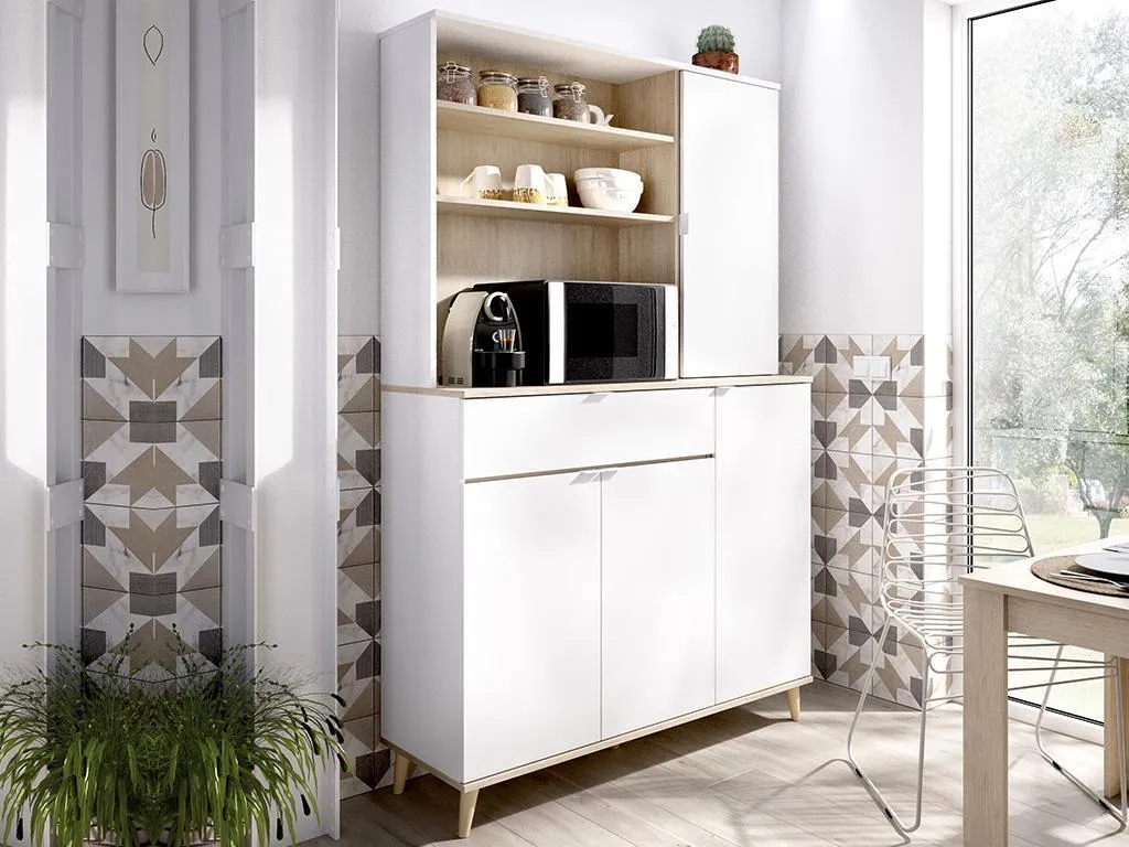 Küchenschrank Mit 4 Türen, 1 Schublade & 3 Ablagen – Weiß & Eichefarben – WAJDI