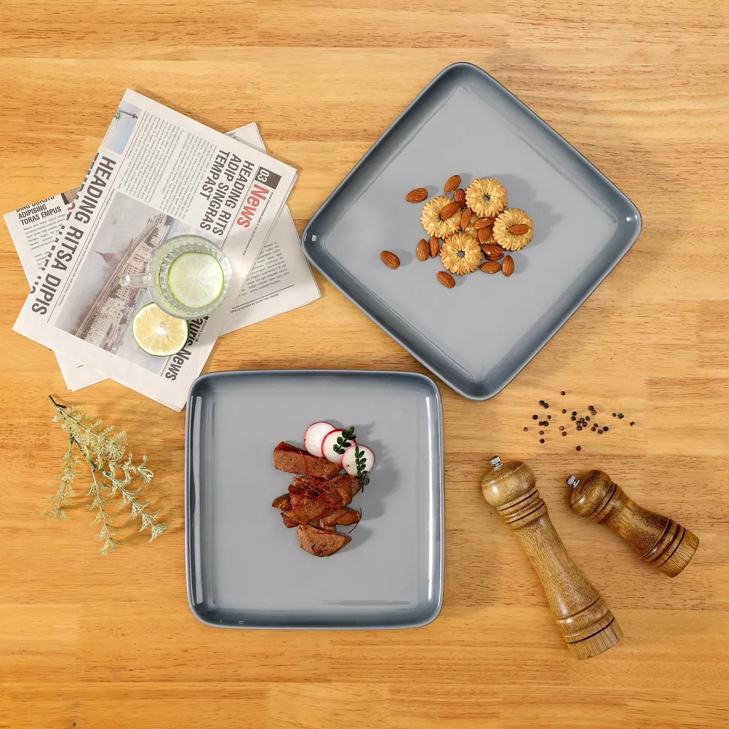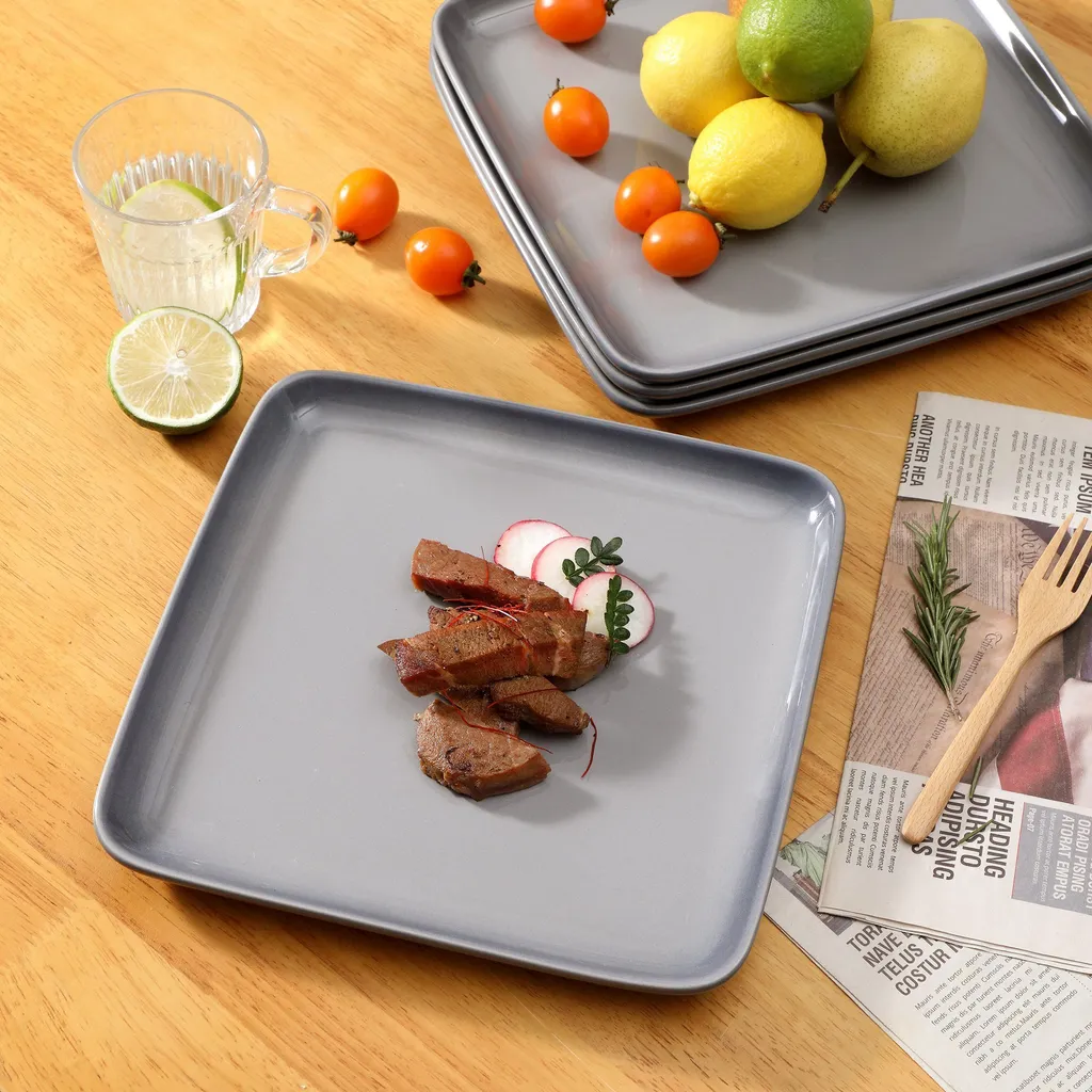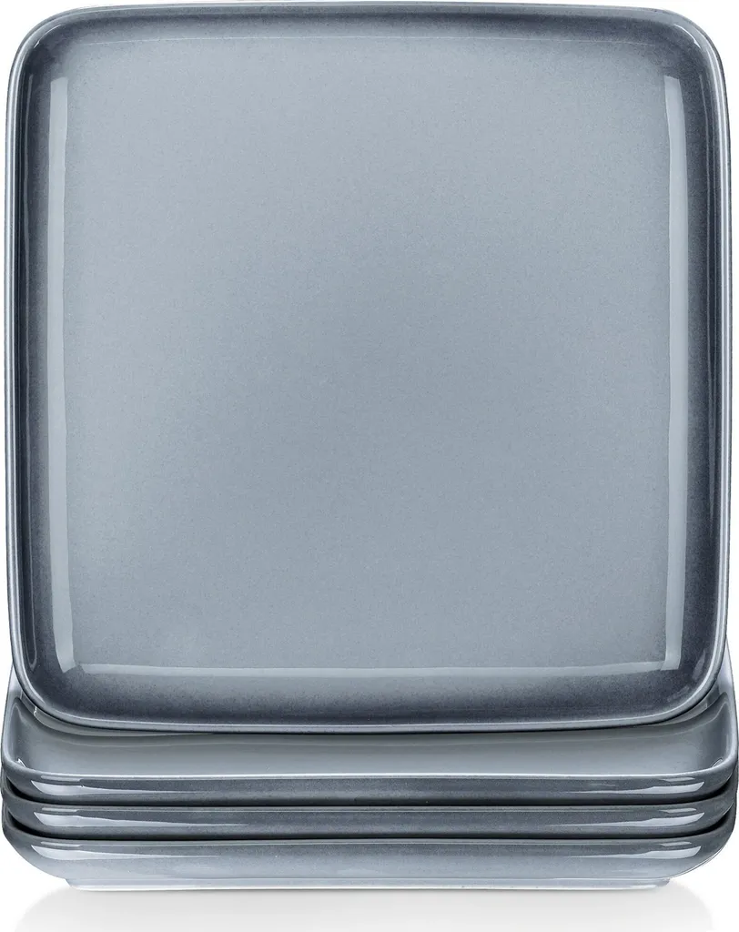LOVECASA Tafelservice, 4-tlg Set Quadratische Speiseteller Aus Steingut, Flachteller, Frühstücksteller Für 4 Personen, Grau