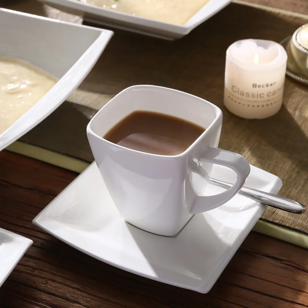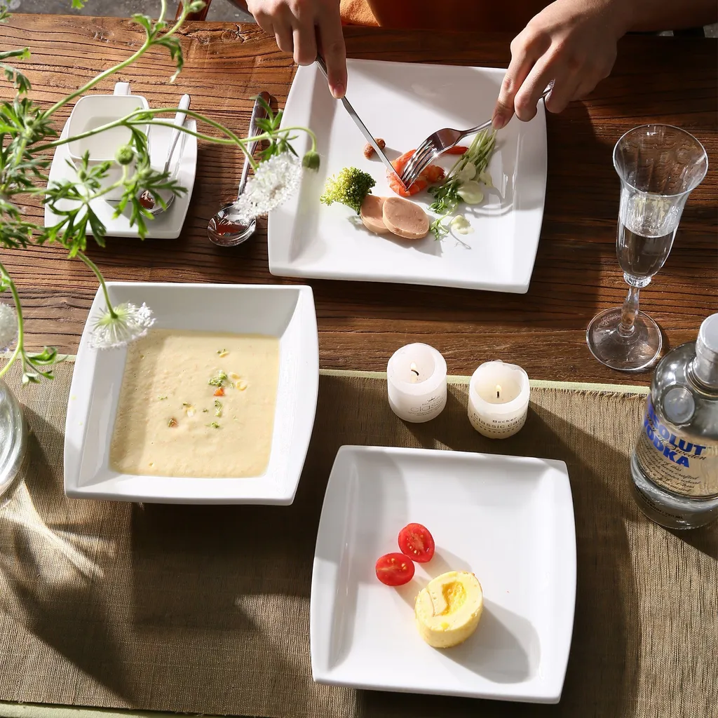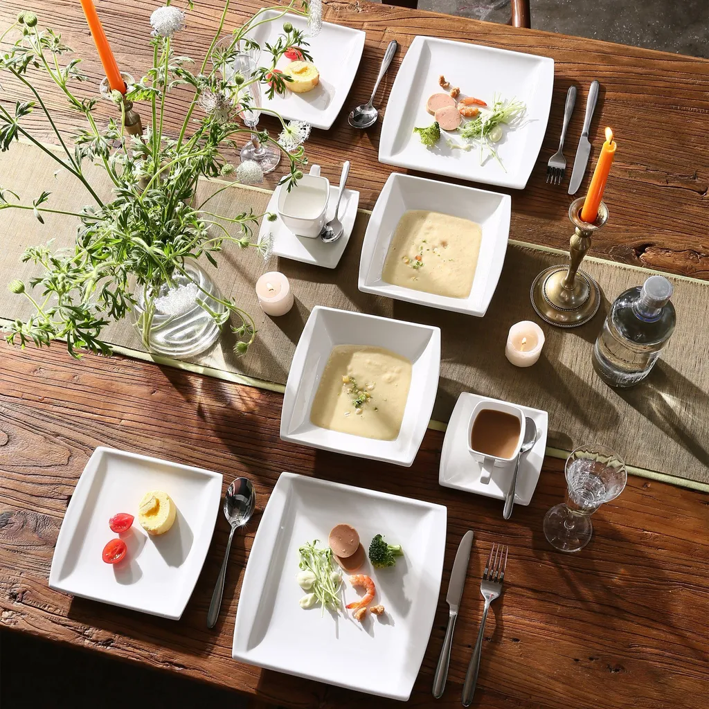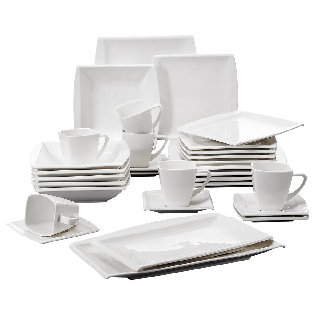 MALACASA 32 Tlg. Kombiservice, Serie BLANCE Cremeweiß Porzellan Geschirrset Mit Servierplatte