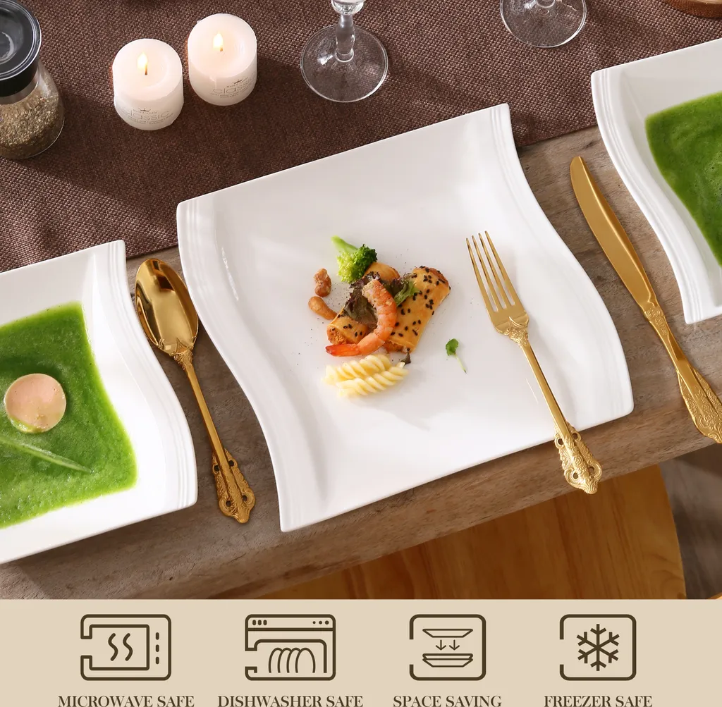 MALACASA, Serie Flora, 18 Tlg . Set Cremeweiß Porzellan Kaffeeservice Geschirrset Mit Je 6 Kuchenteller, 6 Tasse 220ml, 6 Untertasse Für 6 Personen