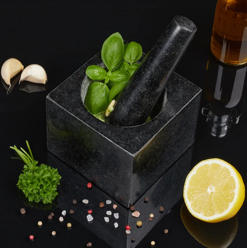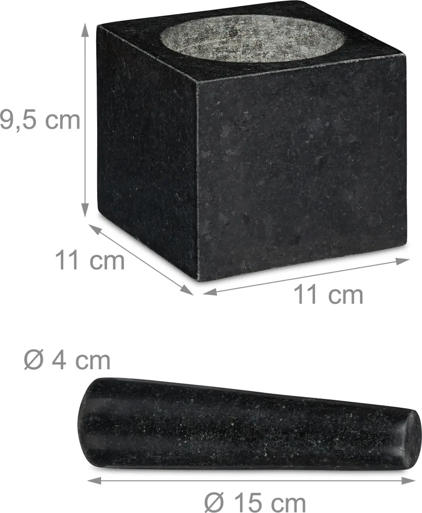 Relaxdays Eckiger Granit Mörser Mit Stößel