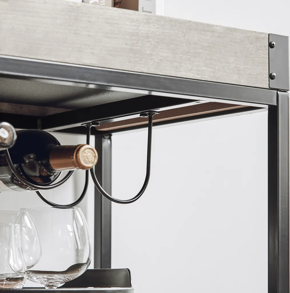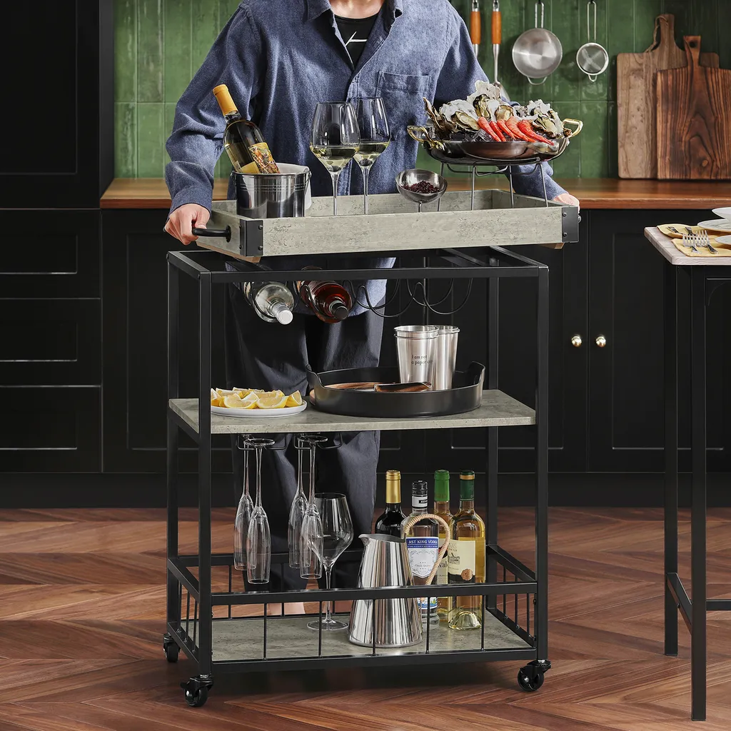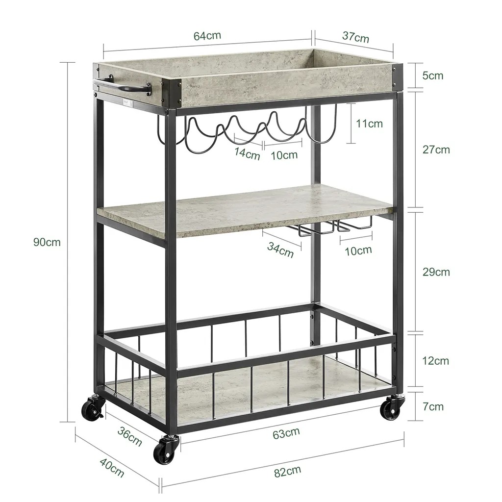 SoBuy FKW56-HG Servierwagen Mit 2 Ablagen Und Einem Abnehmbaren Tablett Küchenwagen Mit Rollen Rollwagen Metall Rollbar Beton Hell
