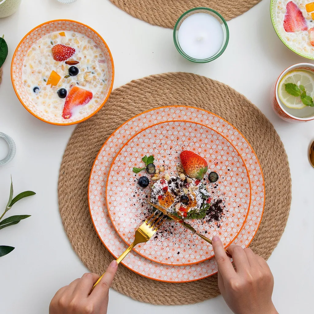 Vancasso Natsuki 16-teilig Porzellan Kombiservice, Mit Je 4 Speiseteller Ø 27 Cm, Dessertteller Ø 21,5 Cm, Müslischalen Ø 15,2 Cm Und Kaffeebecher 380 Ml