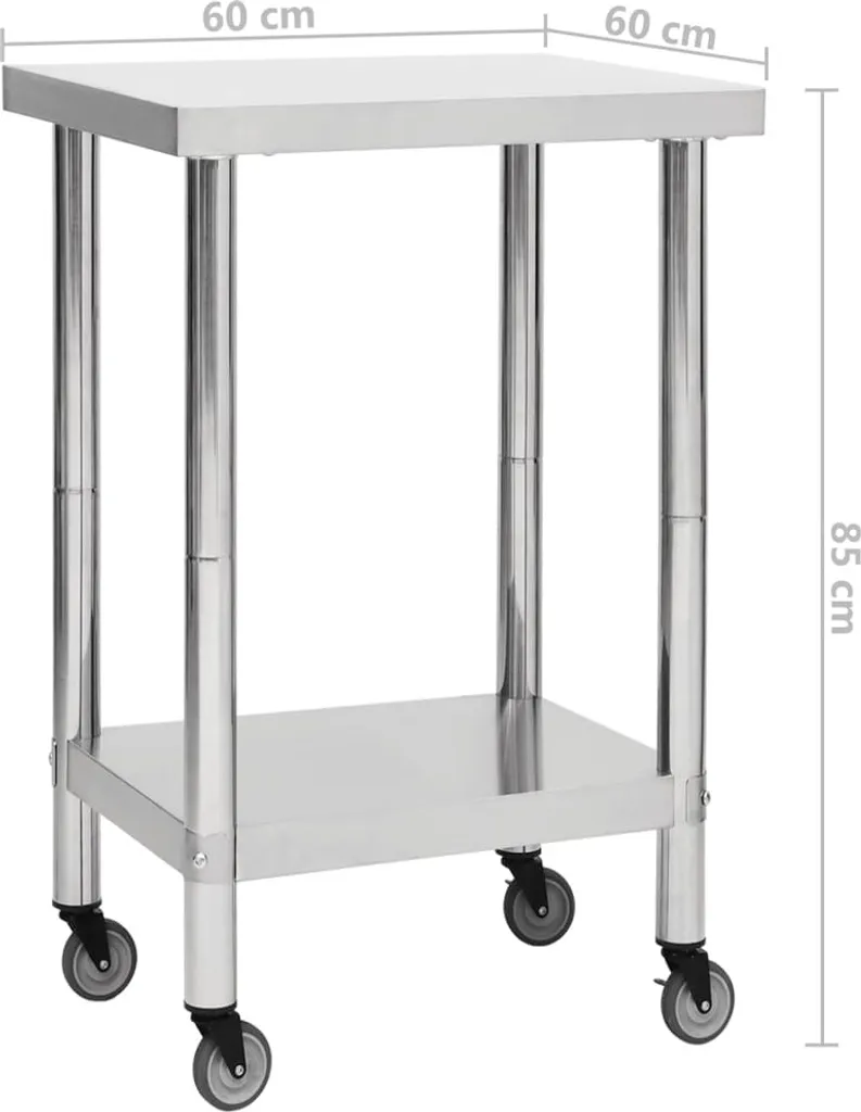 VidaXL Küchen-Arbeitstisch Mit Rollen 60x60x85 Cm Edelstahl